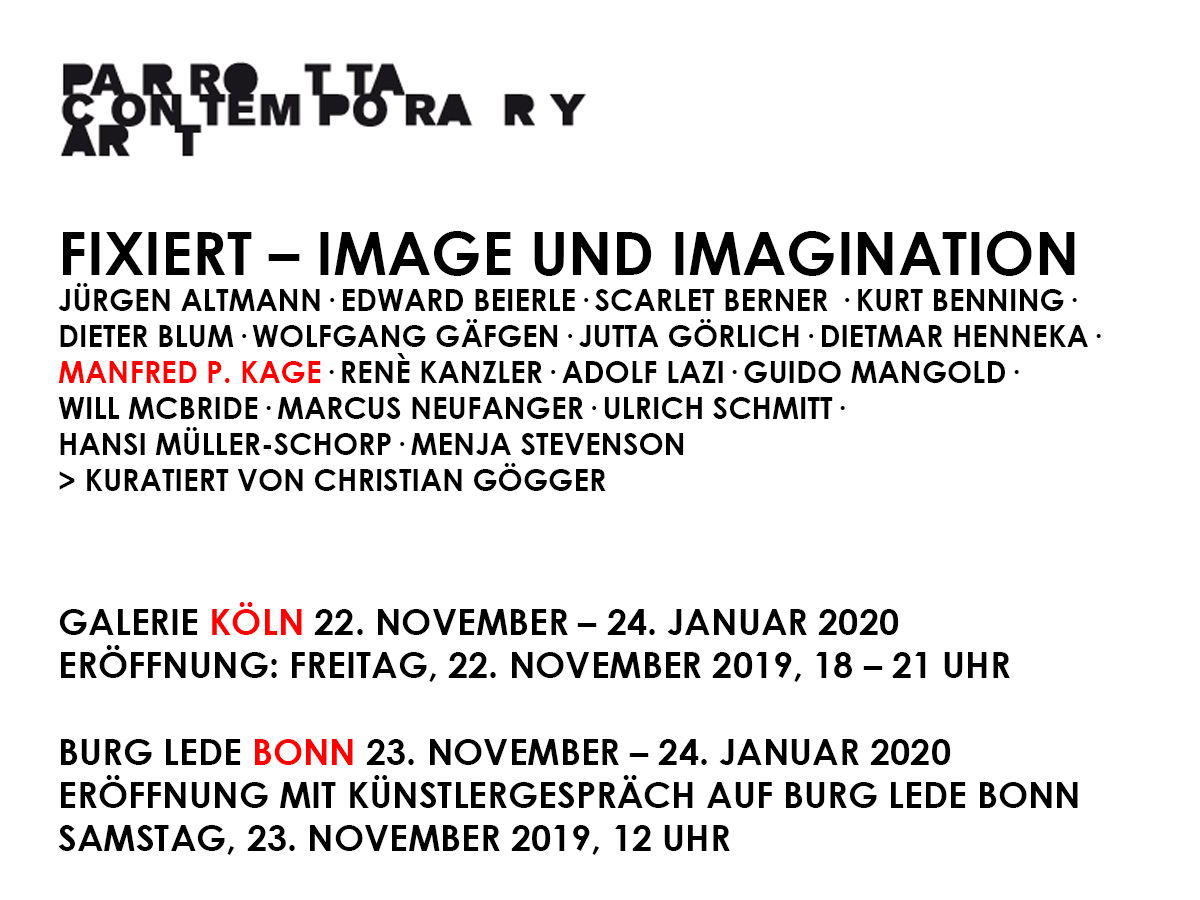 Die Ausstellung Fixiert – Image und Imagination führt Fotografien aus verschiedenen Bereichen zusammen, um die Bandbreite der Tendenzen im Umgang mit dem fotografischen Medium zu beleuchten: Porträt, Landschaft, Werbung, Street-Photographie, Reportage, Fotogramm, Sachaufnahme, Zeitdokument, Serie, analytische und subjektive Fotografie, aktuelle wie historische Aufnahmen.
