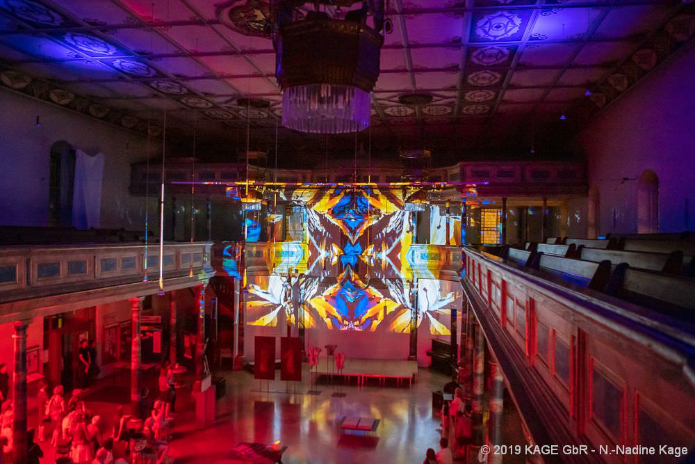 Übrigens: Prof. Manfred P. Kage (1935-2019) ist der Erfinder des „Optischen Konzertes“ und wird heute aufgrund dieser bahnbrechenden Idee von 1958 als einer der wichtigsten Multimediapioniere der Welt genannt. Seine in Echtzeit wie eine Art Klaviatur interaktiv zur Musik gespielten „Optischen Konzerte“ präsentierte er als Groß- und Mehrfachprojektionen an architektonischen Bauten oder Kuppeldächern, in Naturräumen, auf Theaterlandschaften oder auf Kunstwerke bereits ab 1959.