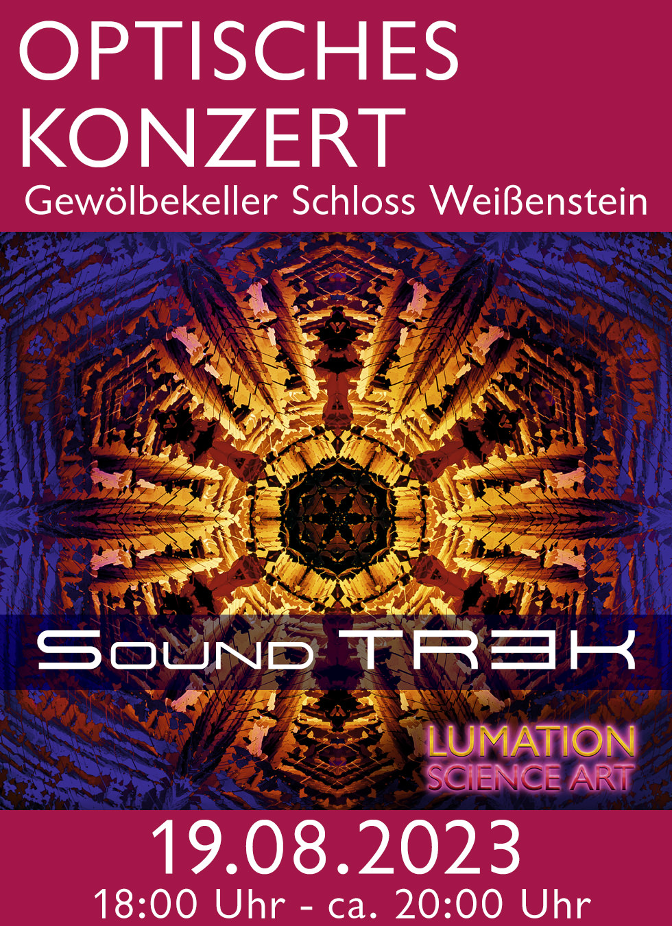Am 19.08.23 (18:00 Uhr bis ca. 20 Uhr - Einlass 17:45 Uhr) bieten wir Ihnen unser Multimediakonzert "Optisches Konzert – Sound Trek" im Schlossgewölbekeller in zweiter Runde.