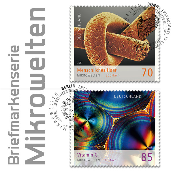 Sonderpostwertzeichen-Serie "Mikrowelten“: Haarknoten und Vitamin C