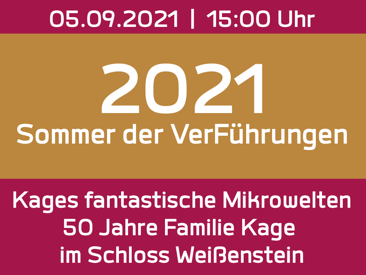 Das Thema der Veranstaltung ist „Kages fantastische Mikrowelten - 50 Jahre Familie Kage im Schloss Weißenstein“.